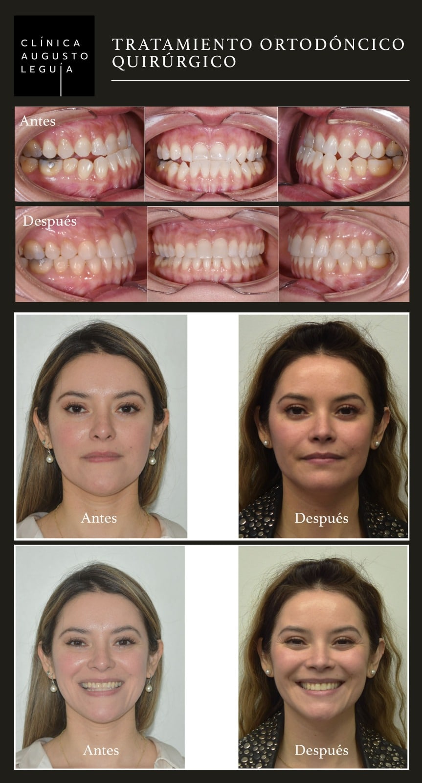 Esto puede corregirse con un tratamiento conjunto de ortodoncia y cirugía ortognática. La cirugía ortognática es un procedimiento que se encarga de corregir la posición de los huesos maxilares (maxilar superior y mandíbula) cuando se encuentran alterados, logrando un equilibrio en las características faciales y en la mordida del paciente.